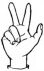 На ћирилици написано НЕДА РУЧНОВ састоји се из 10 слова [?]. Исписано ћириличном једноручном азбуком за глувонеме: